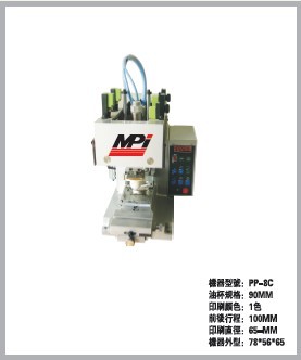 PP-8C移印機由機身、機頂、機膽、膠頭組合、鋼片油杯組合、獨立調校、工作臺組合、氣動控制、電路系統(tǒng)、操控面板等部分組成。