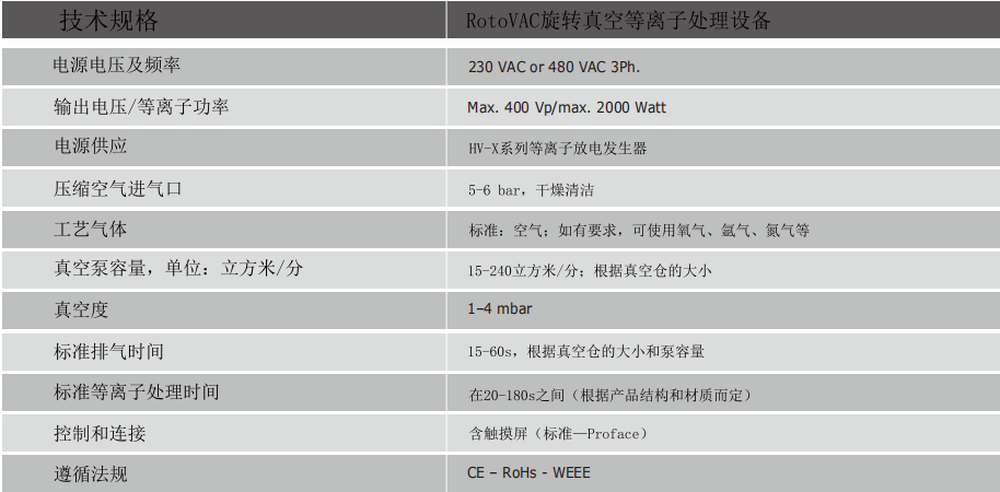 RotoVAC等離子處理設備具有操作簡單、生產(chǎn)可靠性高、處理速度快等特點。可使用氬氣或氧氣等工藝氣體,但是大多數(shù)情況下,等離子放電產(chǎn)生的高能量就可以大大提高物體表面能量,因此無需再使用這些工藝氣體。